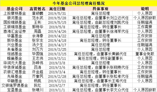 实际上,5月以来已有多家基金公司公告总经理变更信息。