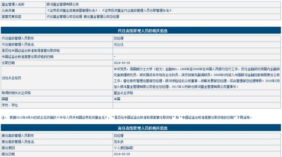 5月15日,国投瑞银基金公告称,原总经理王彬由于任期届满而离任,总经理一职暂由公司副总经理刘凯代任。同一天,淳厚基金也公告,原董事长邢媛因公司业务发展需要,不再担任董事长,转任公司总经理,董事长一职由李雄厚担任。