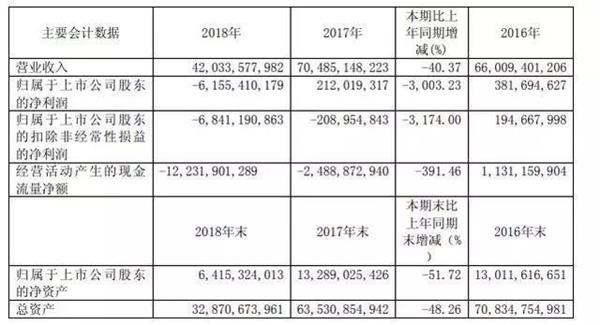 4月30日,庞大集团公布了2018年财报。2018年,庞大集团实现营业收入420.34亿元,同比下降40.37%。归属于上市公司股东的净利润为-61.55亿元,上年同期为2.12亿,同比暴跌3003.23%。在去年A股十大亏损王里,庞大集团位居第四,排在天神娱乐、中兴通讯和*ST华业之后。