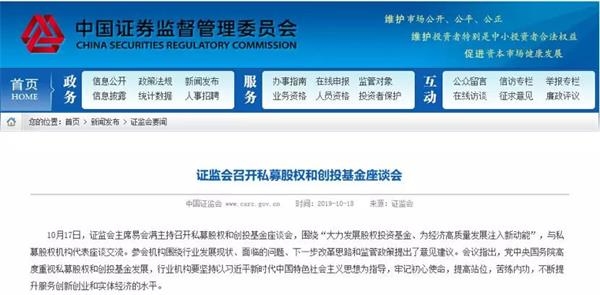 10月17日,证监会主席易会满主持召开私募股权和创投基金座谈会,围绕“大力发展股权投资基金、为经济高质量发展注入新动能”,与私募股权机构代表进行面对面的交流。