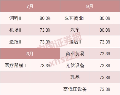 三季度上涨概率超70%的行业