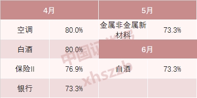 进入二季度后,就只剩下白酒的孤独了:白酒板块在二季度表现出显著强势,4月和6月的上涨概率都超过70%,而且在6月100%跑赢沪深300。