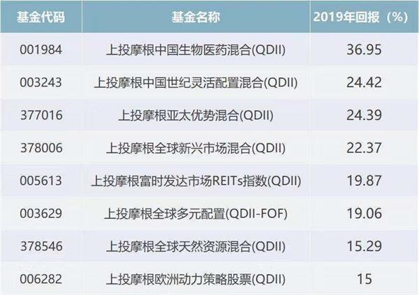 海外产品方面,截至2019年12月31日,9只QDII产品平均回报超20%,其中上投摩根中国生物医药基金涨幅37.0%。