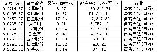 (畜禽养殖板块融资净买入额排名)