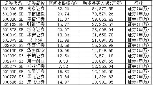 (券商板块融资净买入额排名)