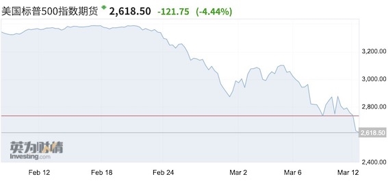 截至北京时间3月12日凌晨收盘,美国三大股市再跌近5%,欧股五连跌深陷熊市。当前,全球病例逾11.5万。世界卫生组织(WTO)也表示,新冠肺炎疫情已具有全球大流行特征。