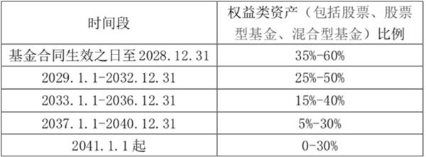 另外,南方基金旗下的南方养老2040三年持有混合(FOF)和南方养老2045三年持有混合(FOF)也于5月25日开启认购。《每日经济新闻》记者翻阅上述两只基金的基金合同发现,这两只基金投资组合比例为:80%以上基金资产投资于公募基金,投资权益类资产比例不超过60%,投资于港股通标的股票不超过股票资产的50%。另外,两只基金都随着时间的推移逐步分5个阶段降低权益类资产比例。