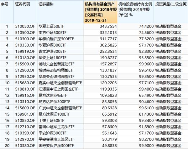 机构持有ETF基金TOP20