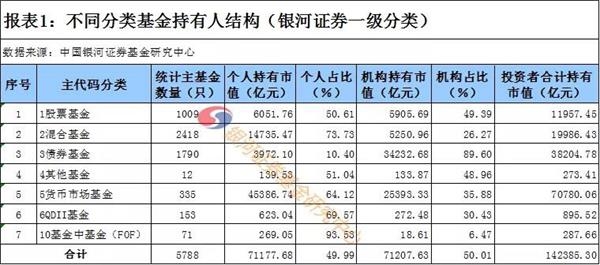 根据中国银河证券基金研究中心数据显示,机构连续三年成为基金的主力投资者,2017年-2019年,基金的机构投资者占比均显著超过个人投资者占比。截至2019年12月31日,剔除货币市场基金口径看,个人持有25790.94亿元,个人占比36.02%;机构持有45814.30亿元,机构占比63.98%,机构持有接近三分之二的份额。