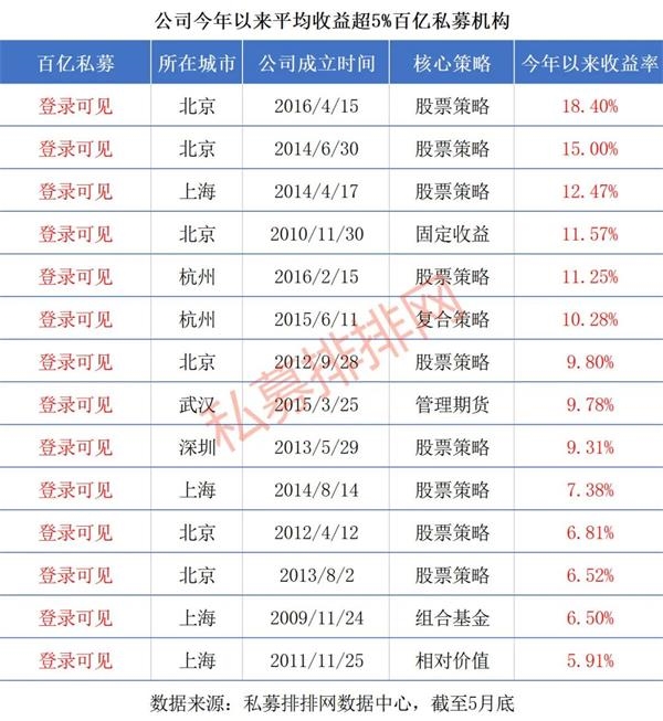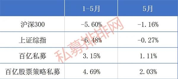 根据私募排排网统计,截至5月底,国内共有41家私募管理规模超过百亿元,有完整净值更新的百亿级私募共有33家,年内取得3.15%的正收益,其中股票策略百亿级私募的整体收益达4.69%。