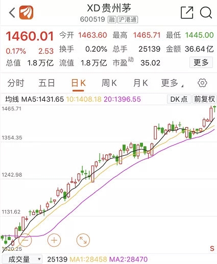 6月23日,贵州茅台股价收盘于1474元,再创历史新高。茅台在过去十年里成就超级牛股。茅台的销售价格上涨也令人咂舌,一瓶飞天茅台在上世纪80年代的售价是一美元,现在是400美元。在过去五年内,茅台的股价飙升了近600%,这一表现超过亚马逊之类的科技巨头。