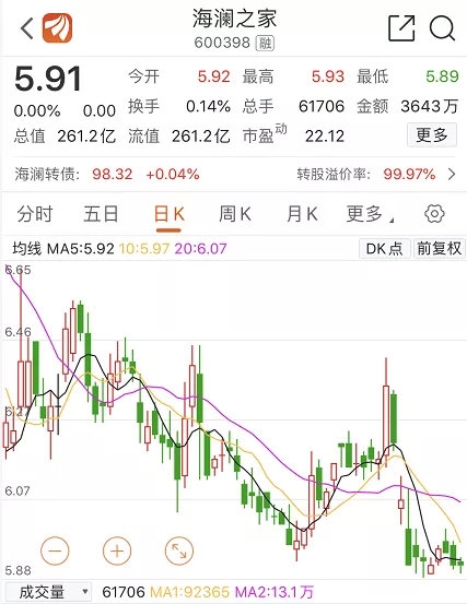 被誉为“男人的衣橱”的海澜之家,6月24日继续在每股5.9元附近阴跌,这家公司自2018年5月底开始,已整整下跌两年之久,股价跌幅接近65%。在前不久,海澜之家还刚刚度过6月21日的父亲节,不过父亲节在中国也并无商业价值。