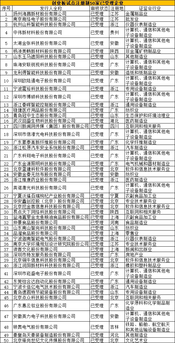 创业板注册制受理企业增至50家 6位公募基金人士跻身创业板上市委候选人
