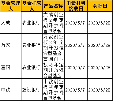 在创业板注册制改革如火如荼之际,作为配套的基金产品,首批四只创业板2年定开混合型基金正式获批,而这四只产品花落:富国、大成、中欧、万家。