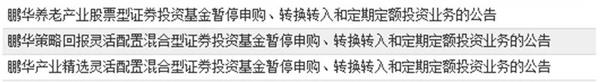 值得注意的是,7月10日,鹏华基金连发三条公告,暂停鹏华养老产业股票、鹏华策略回报混合、鹏华产业精选等三只基金的申购、转换转入和定期定额投资业务。上述三只基金均由王宗合管理。