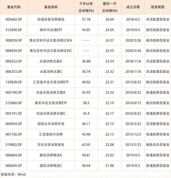 以基金名称中带有“消费”和“酒”的基金来看,涨幅超过中证消费指数的基金包括: