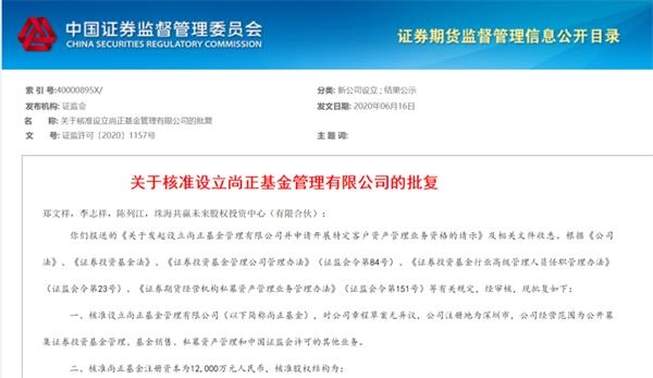 今年6月,证监会核准设立的尚正基金管理有限公司,是年内获批的第三家“个人系”公募,也是国内第二十家“个人系”公募基金。