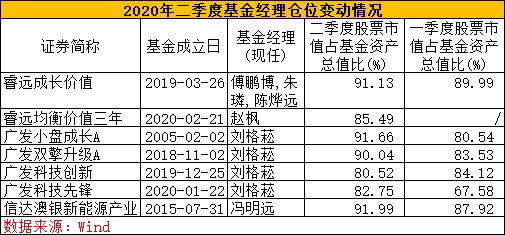 正式披露的基金二季报也显示,多位明星基金经理在二季度也同样维持高仓位的操作策略。