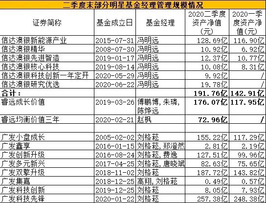 信达澳银冯明远二季度末旗下所管基金合计规模也已经接近200亿元(次新基金规模按照成立规模计算),而在一季度末时,全行业管理规模超过200亿的主动权益基金经理还不到30位。今年二季度爆款基金频出,加上基金净值上涨带来的资产规模提升,随着基金二季报继续披露,明星基金经理管理规模翻倍增长或是二季度一个较为突出的现象。