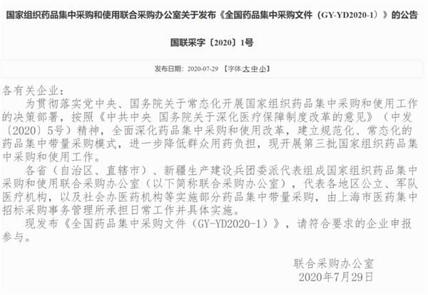 7月29日,第三批带量采购官宣启动。此次涉及56个品种,较前两批品种大幅扩容,覆盖多个亿元级品种。