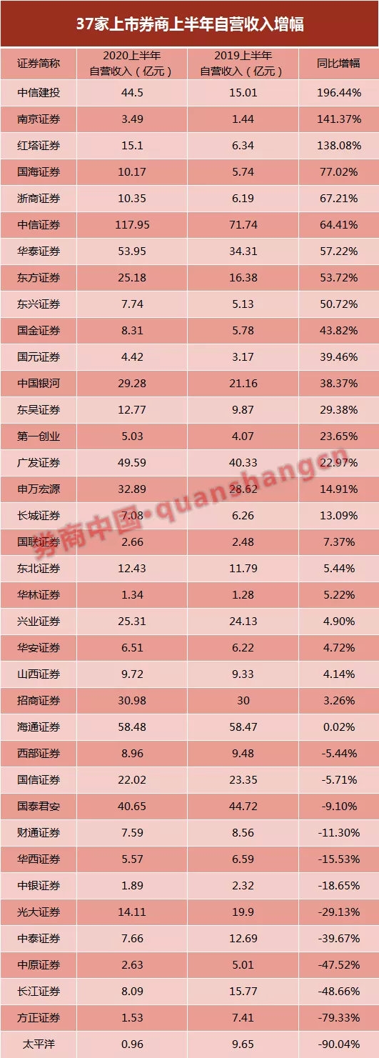 (原标题:券商“炒股”成绩曝光!9家自营收入增长超50% 最高暴增近两倍!来看重仓股名单)
