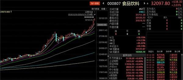 又创新高了!今日早盘,贵州茅台高开高走,盘中大涨超3%,站上1800元大关,再创历史新高。与此同时,食品饮料指数涨逾2%,刷新前高。
