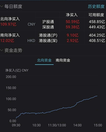 北向资金大幅净买入109.97亿元 本月4日全部呈净买入态势