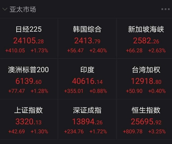 亚太股市普涨 韩国综合指数大涨2.40%