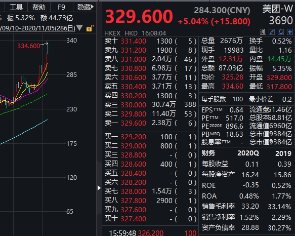 美团也在盘中股价创新高,最终收涨超5%。