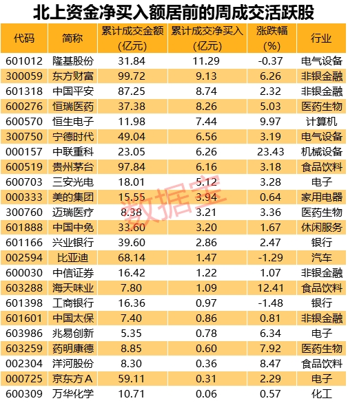 本周北上资金累计净流入A股245.4亿元,多只光伏股被北上资金重点加仓。