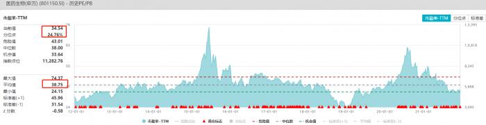 行业进入近10年估值低位。截至12月15日,医药生物板块PE为34.54倍,低于10年平均值37.52倍。