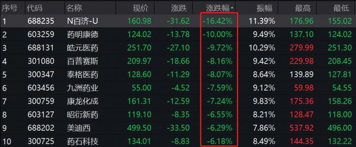 A股看,药明康德午后持续下挫,闪崩跌停,报124.02元/股;皓元医药、百普赛斯、泰格医药均大跌超8%。