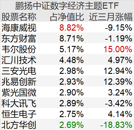 公告书显示,截至2021年12月30日,前十大权重股中,海康威视、东方财富占净值比均超8%;从近三个月涨跌幅看,韦尔股份、三安光电和兆易创新等涨超10%,而北方华创跌超18%。
