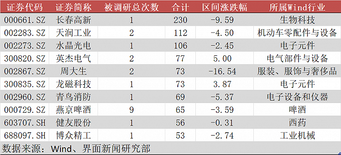 本周,长春高新(000661.SZ)人气最高,共吸引了230家机构参与调研,包括72家公募基金、14家险资、34家券商以及94家投资机构。
