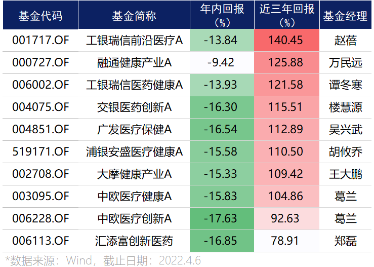 (上表为近三年业绩居前的部分医药创新主题基金及防疫概念相关基金)