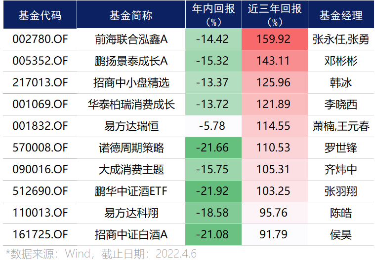 Wind数据显示,截至4月6日, 前海联合泓鑫A、鹏扬景泰成长A、华泰柏瑞消费成长、 诺德周期策略、 鹏华中证酒ETF等多只白酒主题基金近三年回报均超过100%。