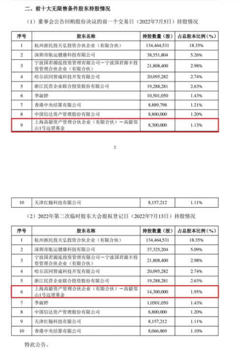 公告显示,截止7月5日,冯柳管理的高毅邻山1号远望基金持有830万股派林生物,持仓市值超过1.88亿元,首次晋升派林生物第9大流通股东。