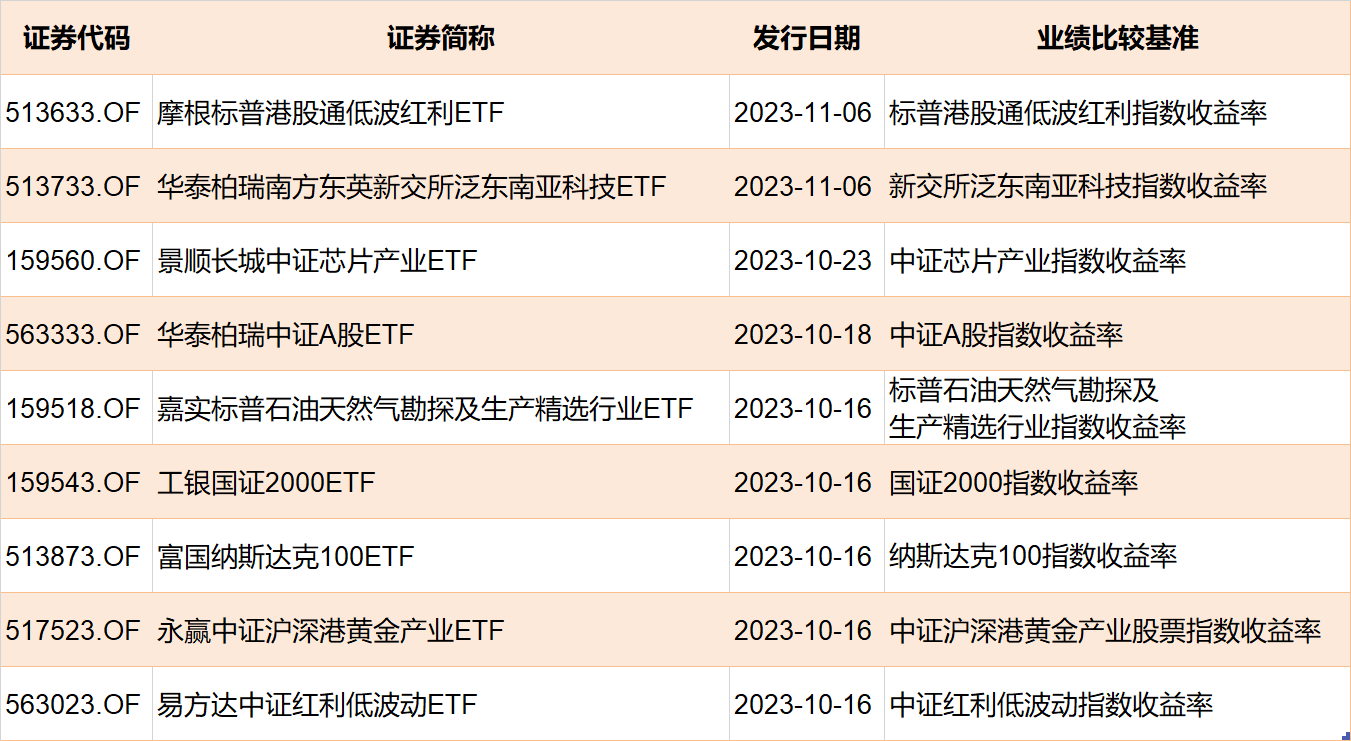 值得注意的是,有2只ETF披露在11月6日发行,跟踪港股通低波红利和新交所泛东南亚科技指数。