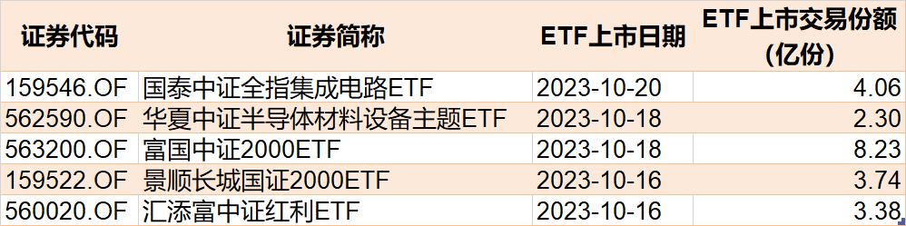 目前暂无ETF披露下周上市,而本周上市的ETF有5只。
