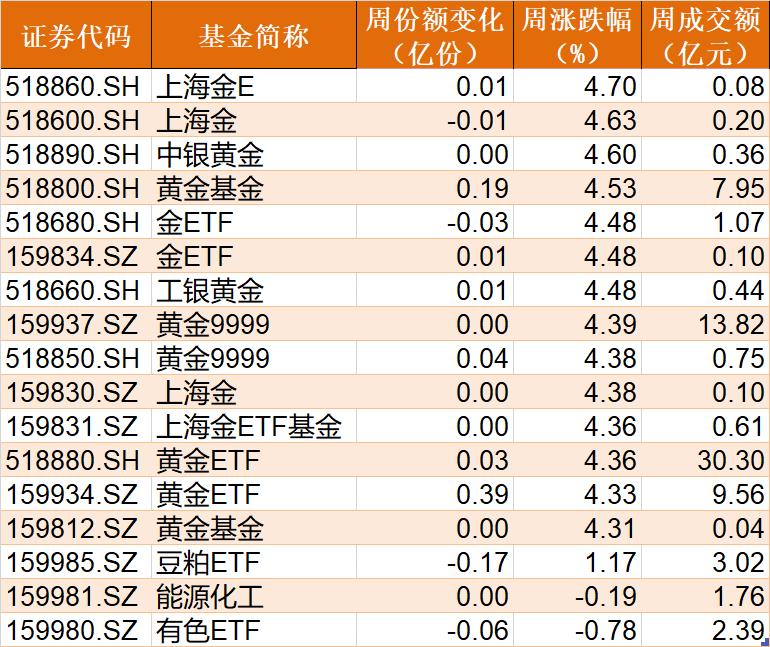 黄金相关ETF普涨逾4%