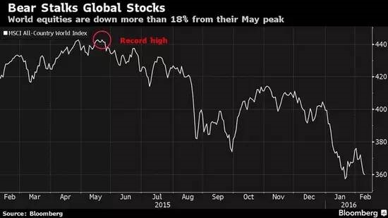 MSCI全球指数自去年5月的历史高点累计跌超18%,即将进入熊市。不过周二亚洲交易时段截至目前,该指数仅下跌0.4%,部分得益于亚洲多数地区因农历新年休市。
