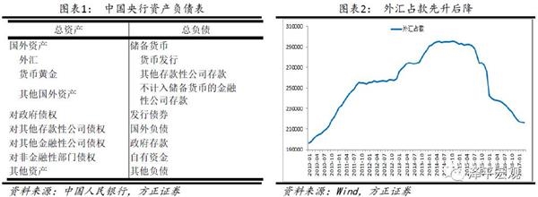 过去20年多年,中国在长期贸易顺差、资本流入的背景下,外汇占款成为中国基础货币的最主要投放方式。外汇占款又是央行资产负债表的资产科目,过去长期的增加成为中国资产负债表扩张的主要原因。近年来,随着中国经济“L”型、美国开启加息周期和国际黑天鹅事件的出现,中国外汇占款的波动加剧,一方面制约着中国货币政策操作,另一方面直接影响中国央行资产规模的变化。同时,随着外汇占款下降,央行正在重新获得基础货币投放的主动权,并且根据调控目的,选择无成本的准备金率和有成本的公开市场操作(SLF、SLO、MLF、PSL).