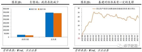 负债端政府存款3月下降0.8万亿,一季度财政政策积极。 今年1-2月的基建投资累计同比增速从去年底15.7%跃升至21.27%,基建发力,挖掘机等工程机械的销量增速大幅攀升,PPP项目的投资落地速度有所加快,雄安新区、一带一路等大项目落地。