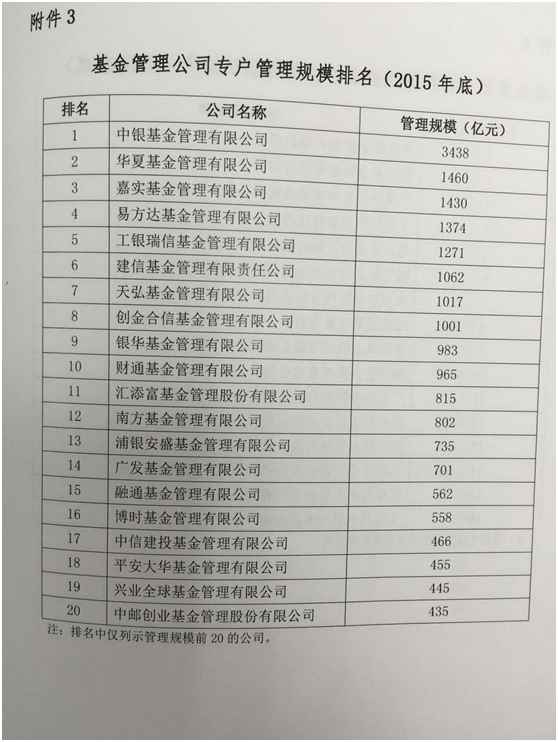 纯专户规模方面,中银基金2015年底专户规模达到3438亿元,蝉联专户规模第一名。