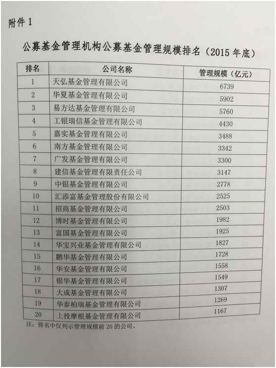公募基金规模20强:天弘、华夏、易方达居前三。