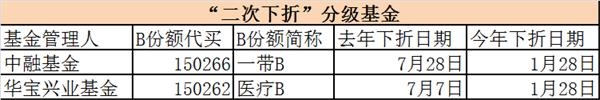 同样令人关注的是,今日下折的分级基金中,华宝兴业医疗B和中融一带B已经是自去年股灾以来第二次触发下折,其中华宝兴业医疗B去年7月7日触发下折,今日再度触发下折,时隔6个多月两次下折。而中融一带B去年7月28日首次触发下折,今日二次下折,时间间隔刚好是6个月。
