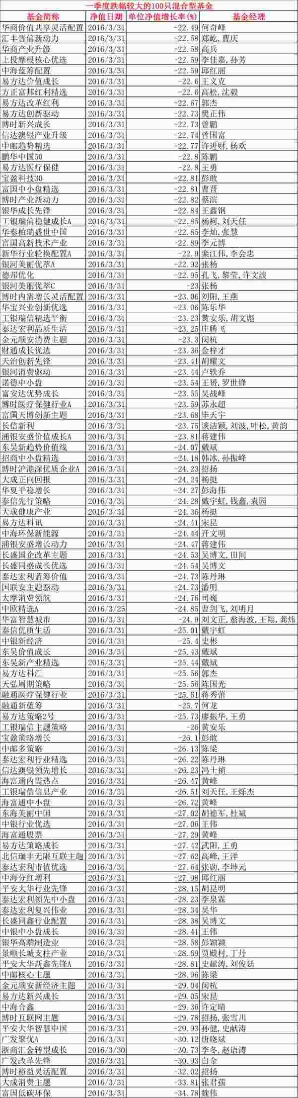 但令人遗憾的是,一季度有超过200只混合基金亏损幅度超过20%,跌幅远超主要指数。有6只跌幅超过30%,无论他们当中的人去年或者曾经多么牛逼,至少一季度他们输了,而且输得很惨。