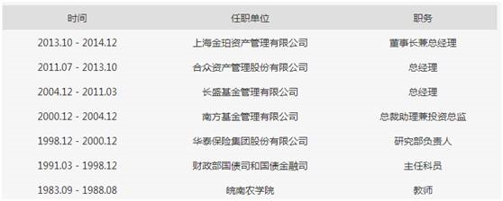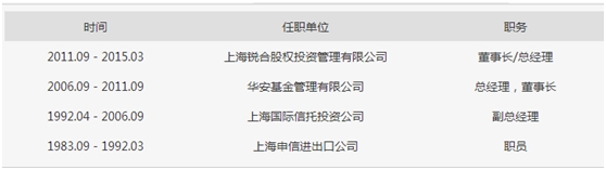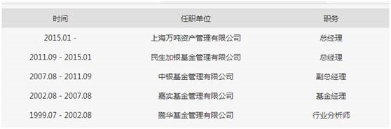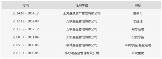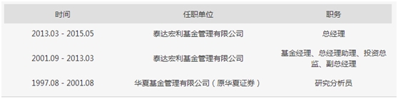 刘青山绝对算得上是公募基金行业资深的投研名将,他1997年就职于华夏证券基金部,参与筹建华夏基金管理公司,从事投资研究工作。2001年起参与筹建湘财合丰基金管理有限公司(泰达宏利基金管理有限公司前身),在该公司2002年成立后一直工作到去年离职,期间历任研究部负责人、基金经理、投资副总监,投资总监兼总经理助理、副总经理兼投资总监。2013年3月起任泰达宏利基金管理有限公司总经理。去年5月离职。在任职基金经理期间,刘青山以管理泰达宏利行业精选基金而闻名业界。