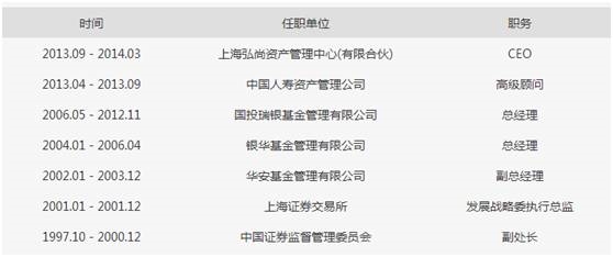 曾在证监会和上交所任职的尚健温文尔雅,却曾拥有多家基金公司高管经历。尚健毕业于上海交通大学,获工学学士学位,后于美国康涅狄格大学获得经济学硕士和金融学博士学位。历任美国教师保险及年金组织投资分析师、中国证监会副处长、上海证券交易所副总监等职务。2002年1月加入华安基金,2002年6月,华安基金公告聘任尚健为公司副总经理,2004年2月尚健从华安基金离职,当月转任银华基金总经理,2006月6月辞职,转投国投瑞银基金出任总经理一职,直到2012年11月从国投瑞银基金离职。离职后尚健短暂担任中国人寿资产管理公司高级顾问,2013年9月开始担任上海弘尚资产管理中心(有限合伙)CEO,正式进军私募基金。