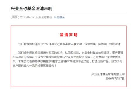 针对一财关于杨东离职奔私的报道,兴全方面目前已经出面澄清。兴全表示,“今日有媒体报道称兴业全球基金近期有高管人事变动,该信息属不实传闻,特此澄清。”